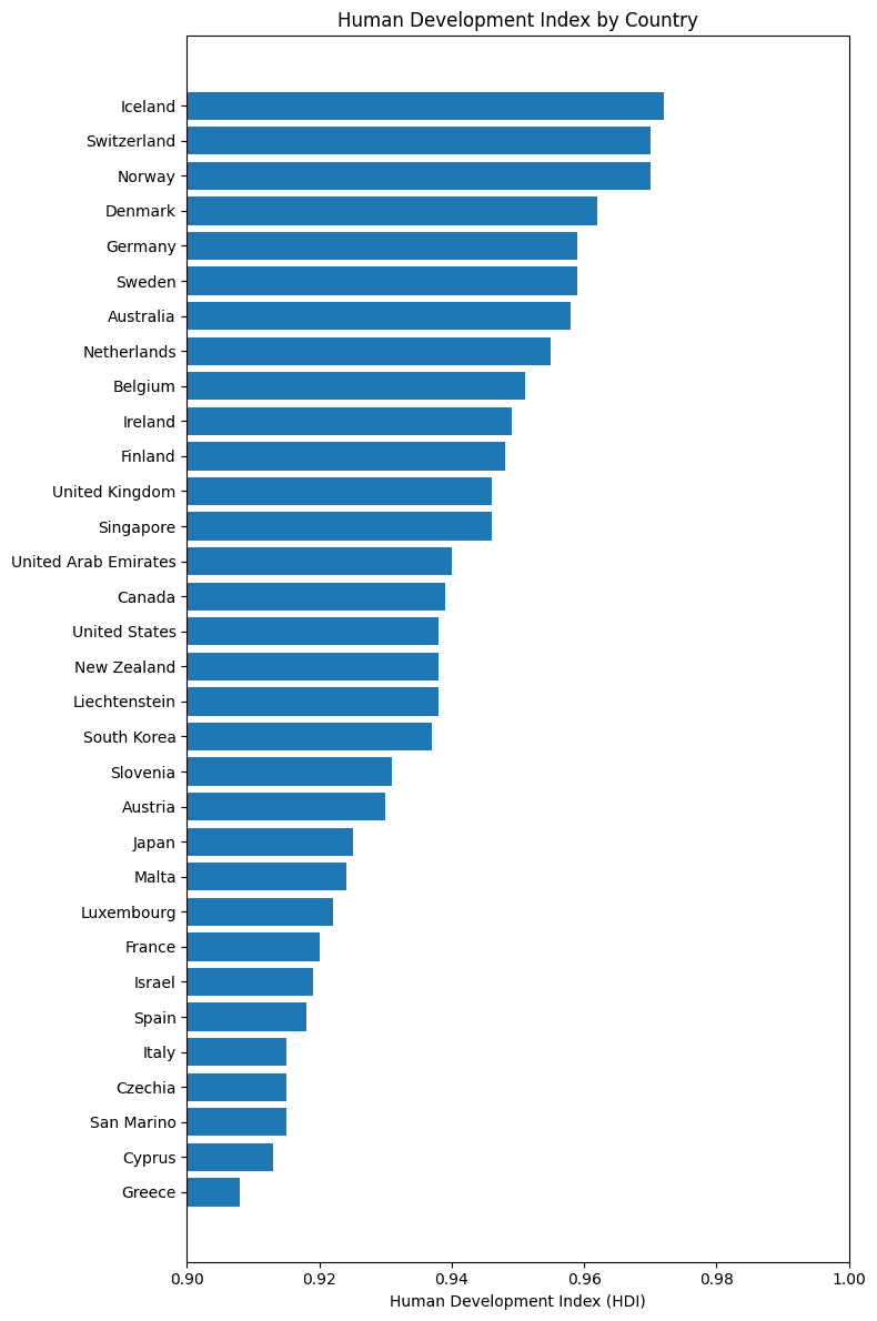 When HDI values are compared across countries, the gap between high-income and low-income countries often appears smaller than when comparisons are based on GNI per capita alone. This reflects the fact that some countries with relatively low incomes have achieved strong outcomes in education or health. Conversely, some countries with higher incomes perform less well on these social indicators.